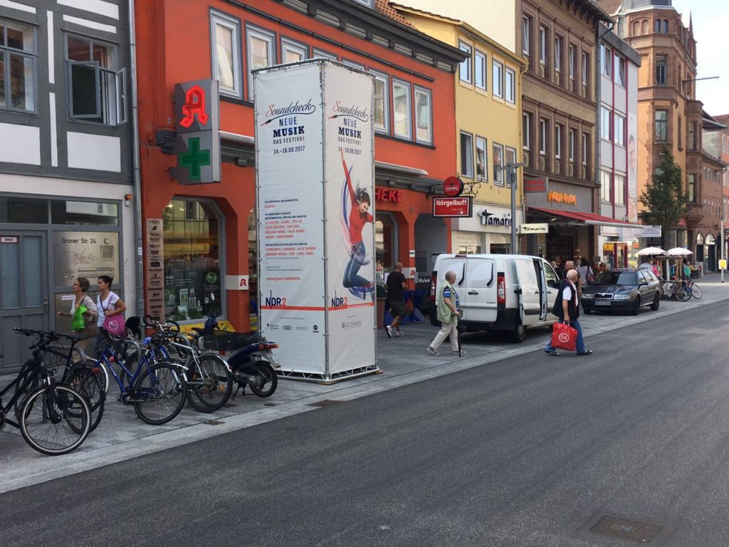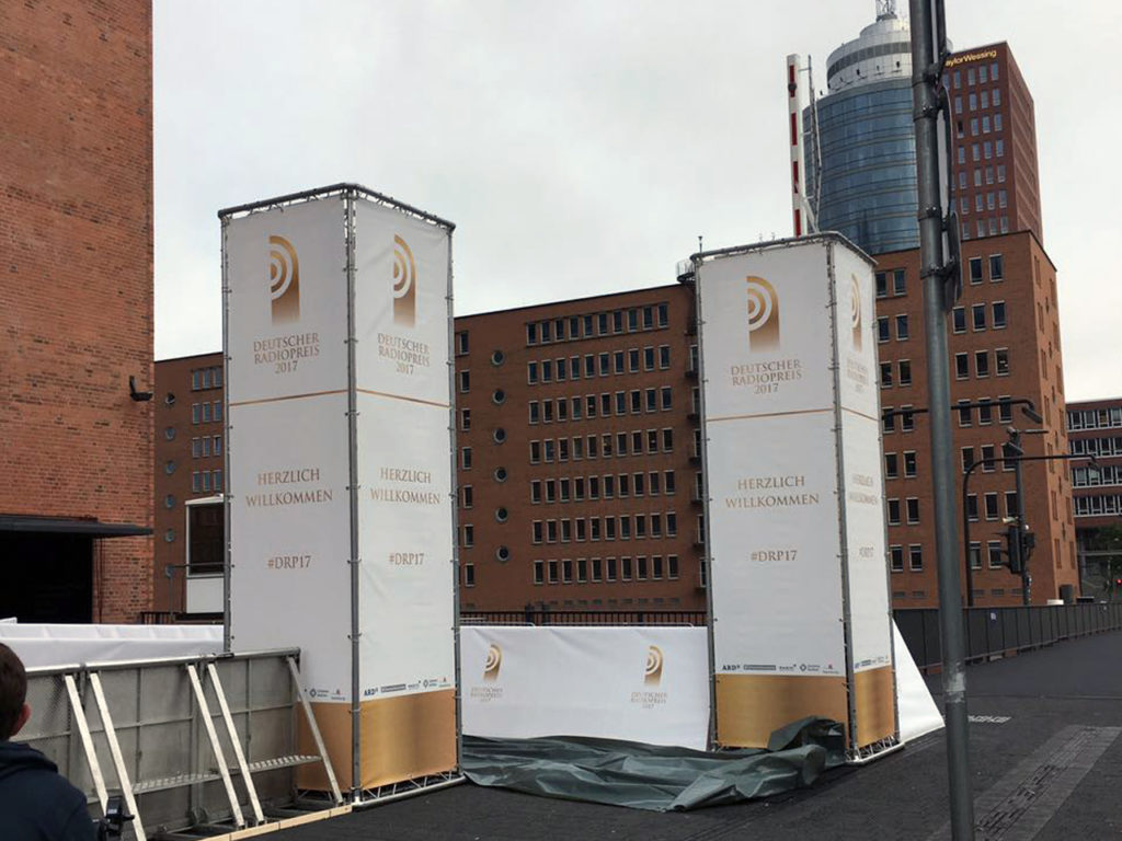 Unsere Traversentürme bieten die unkomplizierte Möglichkeit an quasi jedem Standort kurzfristig Großformat Außenwerbung zu präsentieren. Die spezielle Traversenkonstruktion ist statisch geprüft. Die spezielle Bauweise ermöglicht das faltenfreie Einspannen von Werbebannern. Das unterscheidet unsere Werbetürme elementar von gängigen visuell unschönen Gerüstbauten. Eine Installation einer wetterfesten innenliegenden Beleuchtung ist auf Wunsch zusätzlich möglich.